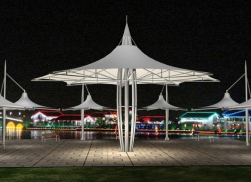 膜結(jié)構(gòu)的跨度大,能夠在沒有中間支柱的情況下覆蓋較大面積,這使得商業(yè)廣場(chǎng)的空間利用更加靈活。例如,大型戶外廣場(chǎng)或停車場(chǎng)可以通過膜結(jié)構(gòu)打造無障礙的寬敞區(qū)域。