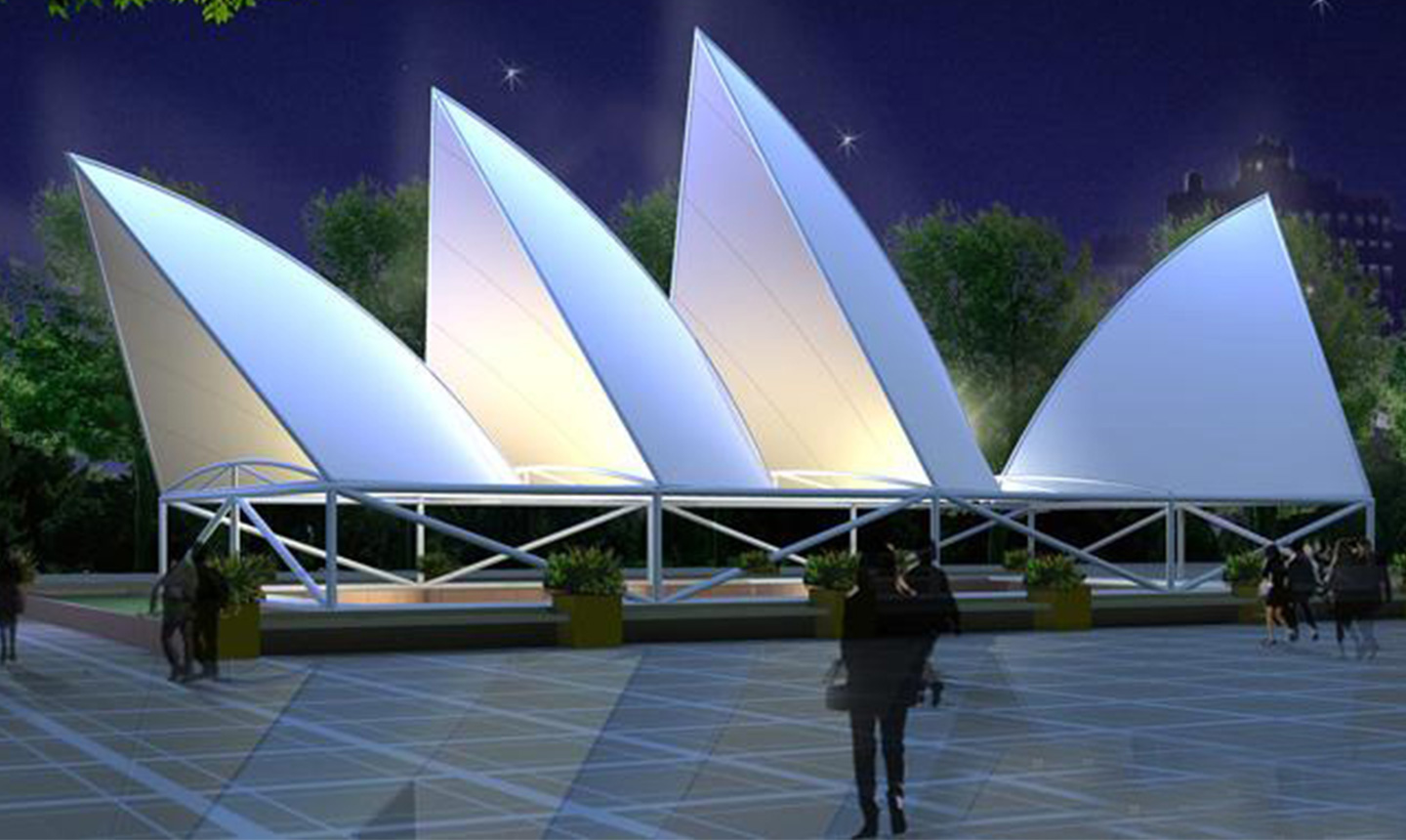 膜結構景觀棚輕巧、別致的造型在停車場及候車廳的建設中起到重要作用,除了滿足防風雨、防日曬等基本功能外,并有較好的標識招攬效果,展現了人們個性化的一面。如果你想有陰影覆蓋或擴大你的建筑特征,在短時間內改變,除了木頭,石頭,金屬和玻璃材料的使用,另一種合適的材料是膜結構景觀棚)。用PVC和PTFE膜,因此他們可以以低成本設計場館的屋頂結構所需的形狀,這些材料可以被成功地用于幾乎所有的景觀或建筑環境,而且不受任何天氣條件的影響。膜結構景觀棚的其他優點是制造和安裝時間短,便宜的價格,高,拉伸和橫向的優勢。