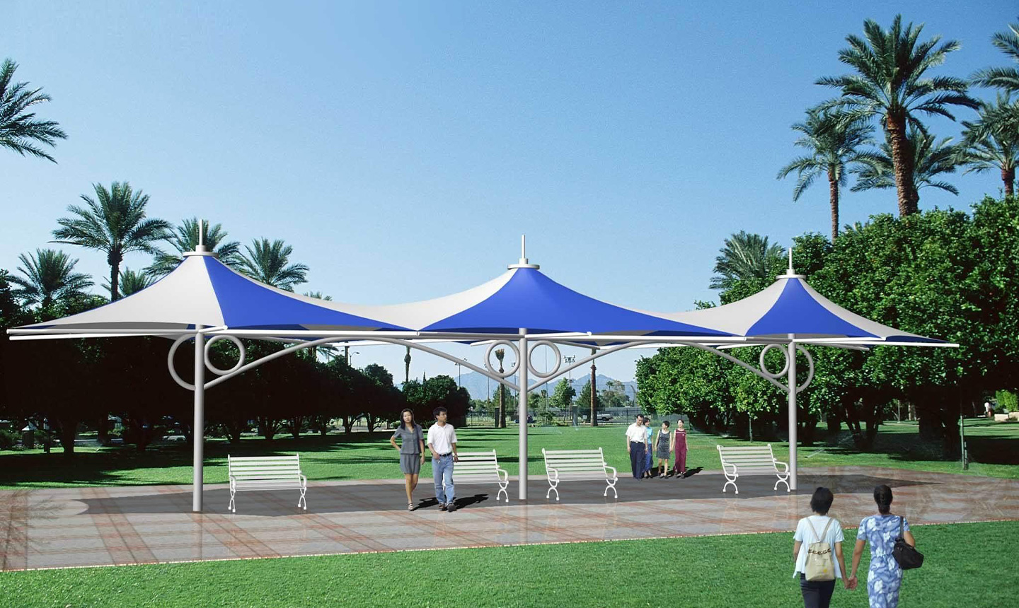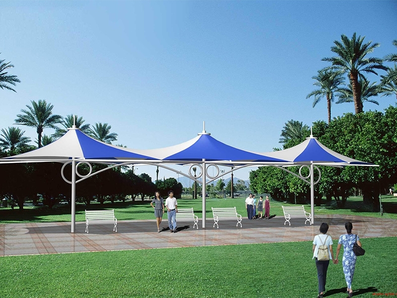 膜結構景觀棚輕巧、別致的造型在停車場及候車廳的建設中起到重要作用,除了滿足防風雨、防日曬等基本功能外,并有較好的標識招攬效果,展現了人們個性化的一面。如果你想有陰影覆蓋或擴大你的建筑特征,在短時間內改變,除了木頭,石頭,金屬和玻璃材料的使用,另一種合適的材料是膜結構景觀棚)。用PVC和PTFE膜,因此他們可以以低成本設計場館的屋頂結構所需的形狀,這些材料可以被成功地用于幾乎所有的景觀或建筑環境,而且不受任何天氣條件的影響。膜結構景觀棚的其他優點是制造和安裝時間短,便宜的價格,高,拉伸和橫向的優勢。