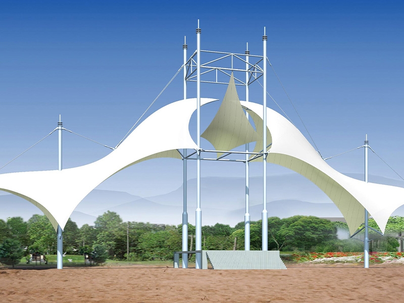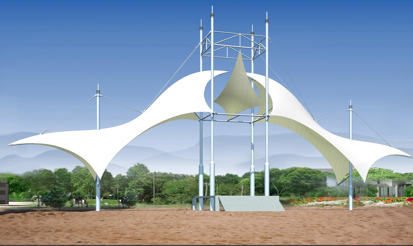 膜結(jié)構(gòu)景觀棚輕巧、別致的造型在停車場(chǎng)及候車廳的建設(shè)中起到重要作用,除了滿足防風(fēng)雨、防日曬等基本功能外,并有較好的標(biāo)識(shí)招攬效果,展現(xiàn)了人們個(gè)性化的一面。如果你想有陰影覆蓋或擴(kuò)大你的建筑特征,在短時(shí)間內(nèi)改變,除了木頭,石頭,金屬和玻璃材料的使用,另一種合適的材料是膜結(jié)構(gòu)景觀棚)。用PVC和PTFE膜,因此他們可以以低成本設(shè)計(jì)場(chǎng)館的屋頂結(jié)構(gòu)所需的形狀,這些材料可以被成功地用于幾乎所有的景觀或建筑環(huán)境,而且不受任何天氣條件的影響。膜結(jié)構(gòu)景觀棚的其他優(yōu)點(diǎn)是制造和安裝時(shí)間短,便宜的價(jià)格,高,拉伸和橫向的優(yōu)勢(shì)。