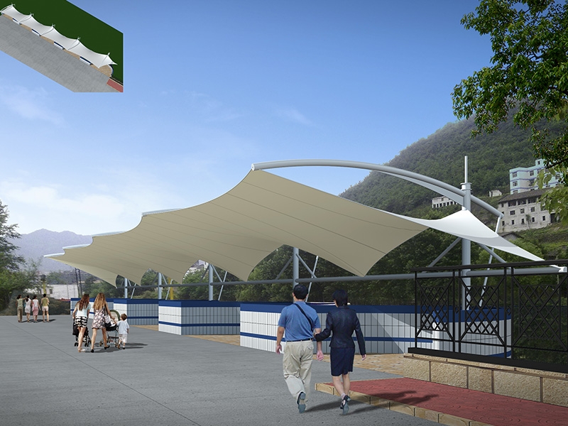 膜結構景觀棚輕巧、別致的造型在停車場及候車廳的建設中起到重要作用,除了滿足防風雨、防日曬等基本功能外,并有較好的標識招攬效果,展現了人們個性化的一面。如果你想有陰影覆蓋或擴大你的建筑特征,在短時間內改變,除了木頭,石頭,金屬和玻璃材料的使用,另一種合適的材料是膜結構景觀棚)。用PVC和PTFE膜,因此他們可以以低成本設計場館的屋頂結構所需的形狀,這些材料可以被成功地用于幾乎所有的景觀或建筑環境,而且不受任何天氣條件的影響。膜結構景觀棚的其他優點是制造和安裝時間短,便宜的價格,高,拉伸和橫向的優勢。