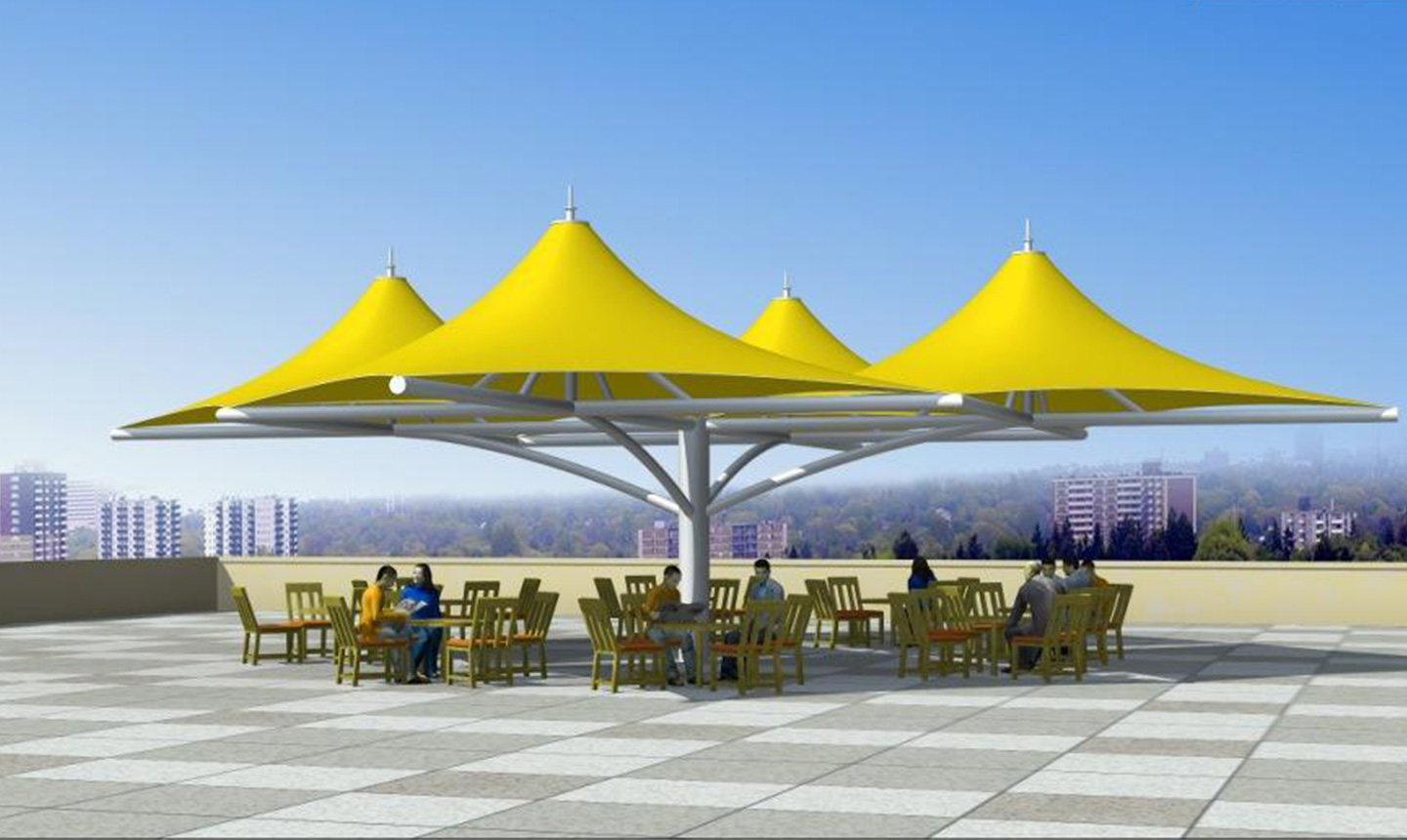 膜結構景觀棚輕巧、別致的造型在停車場及候車廳的建設中起到重要作用,除了滿足防風雨、防日曬等基本功能外,并有較好的標識招攬效果,展現了人們個性化的一面。如果你想有陰影覆蓋或擴大你的建筑特征,在短時間內改變,除了木頭,石頭,金屬和玻璃材料的使用,另一種合適的材料是膜結構景觀棚)。用PVC和PTFE膜,因此他們可以以低成本設計場館的屋頂結構所需的形狀,這些材料可以被成功地用于幾乎所有的景觀或建筑環境,而且不受任何天氣條件的影響。膜結構景觀棚的其他優點是制造和安裝時間短,便宜的價格,高,拉伸和橫向的優勢。