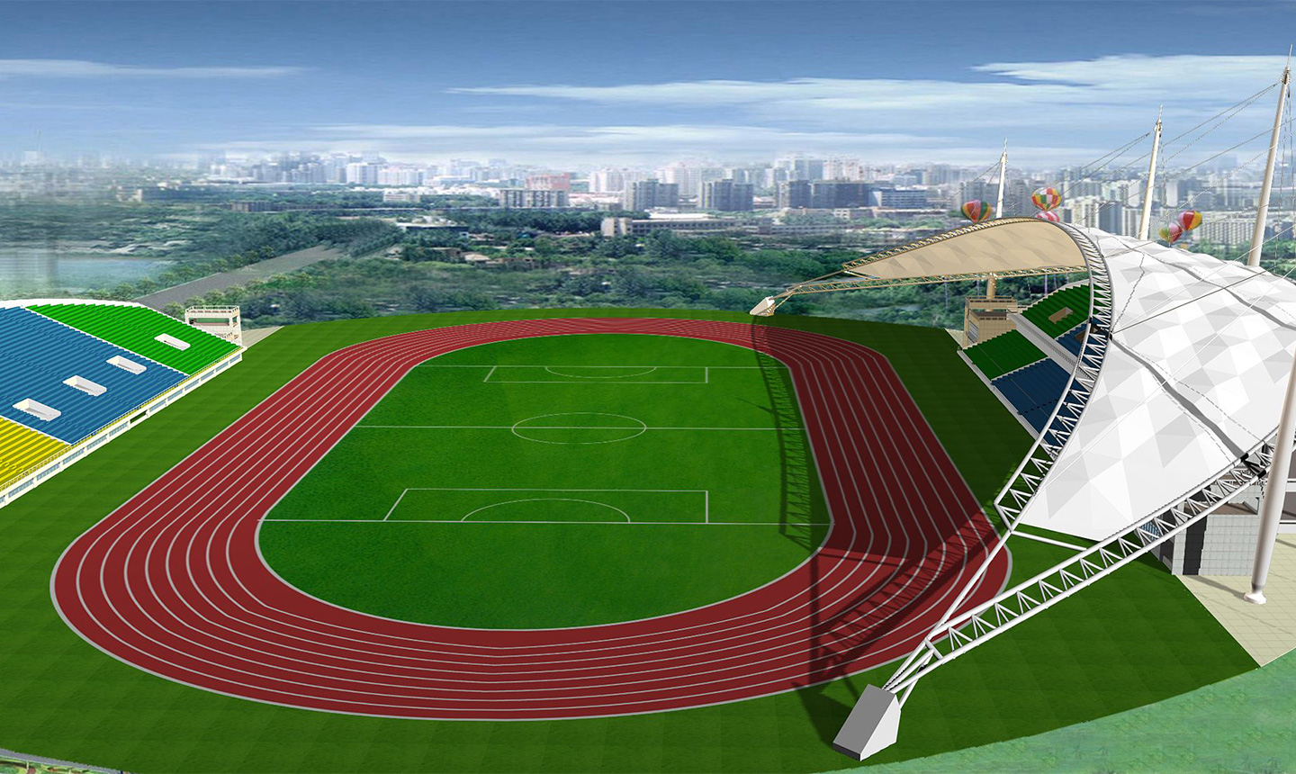 2、體育膜結(jié)構(gòu)看臺的外觀設(shè)計(jì)一向都是露天的,所以在設(shè)計(jì)的時(shí)候我們需要注意它的承重力,因?yàn)橐话愣际菃蝹?cè)建造或者環(huán)繞建造,必須有無數(shù)個(gè)支撐點(diǎn)才能讓整個(gè)頂子具有強(qiáng)抗風(fēng)、抗震的功能 體育場看臺一般都是高大上的感覺,外觀別具特色,實(shí)用性也不錯(cuò)。同時(shí)這種看臺在夏季比賽的時(shí)候,觀眾特別希望可以坐在遮陽效果好的一面,那么我們就需要把這些因素考慮進(jìn)去。盡量讓設(shè)計(jì)大面積的有遮陽效果,最后在膜結(jié)構(gòu)裁剪的時(shí)候要量好尺寸,這樣每塊材料才能很好的焊接成功。做到這些,一個(gè)完美又實(shí)用的體育場看臺就會很快展現(xiàn)在眼前了。
