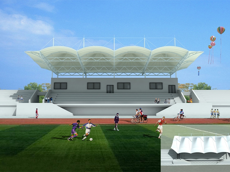 2、體育膜結構看臺的外觀設計一向都是露天的,所以在設計的時候我們需要注意它的承重力,因為一般都是單側建造或者環繞建造,必須有無數個支撐點才能讓整個頂子具有強抗風、抗震的功能 體育場看臺一般都是高大上的感覺,外觀別具特色,實用性也不錯。同時這種看臺在夏季比賽的時候,觀眾特別希望可以坐在遮陽效果好的一面,那么我們就需要把這些因素考慮進去。盡量讓設計大面積的有遮陽效果,最后在膜結構裁剪的時候要量好尺寸,這樣每塊材料才能很好的焊接成功。做到這些,一個完美又實用的體育場看臺就會很快展現在眼前了。