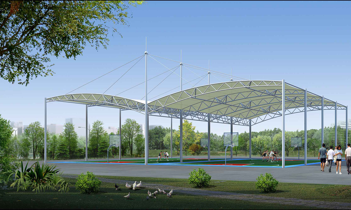 一、對于場地要求低,基本上所有球場地都可以做膜結構頂棚,相比混凝土結構的風雨球館,施工周期短,造價低。