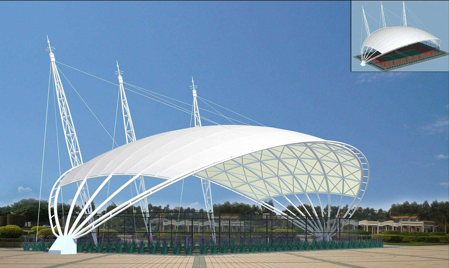 1、由于球場膜結構一般都是露天的,所以在進行膜結構設計的時候,我們需要更多的去計算結構的承重力。