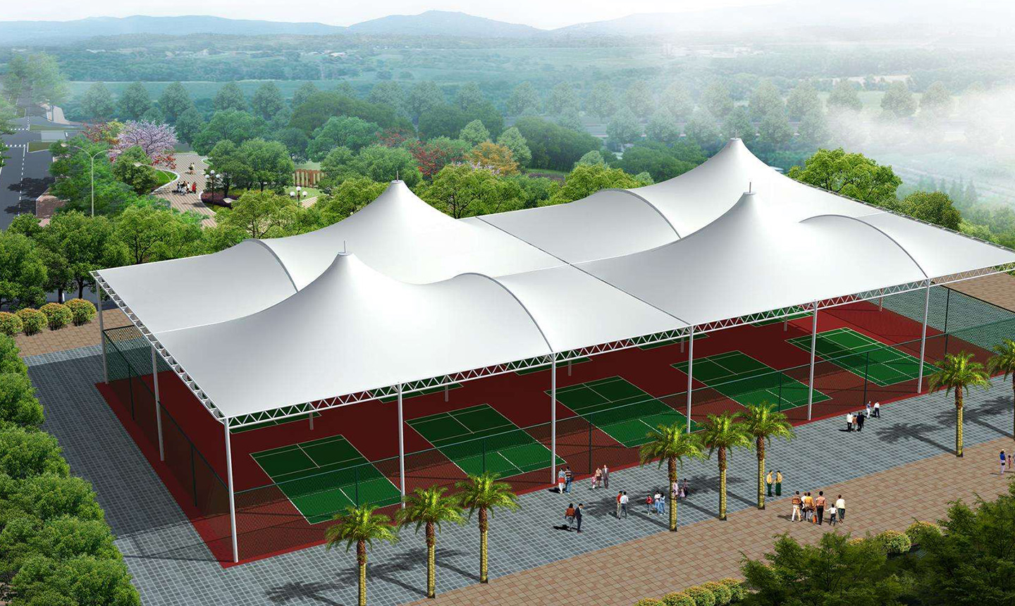一、對于場地要求低,基本上所有球場地都可以做膜結(jié)構(gòu)頂棚,相比混凝土結(jié)構(gòu)的風(fēng)雨球館,施工周期短,造價(jià)低。