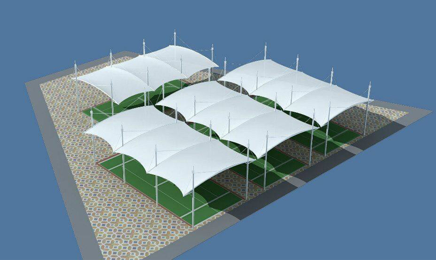 1、由于球場膜結(jié)構(gòu)一般都是露天的,所以在進行膜結(jié)構(gòu)設(shè)計的時候,我們需要更多的去計算結(jié)構(gòu)的承重力。