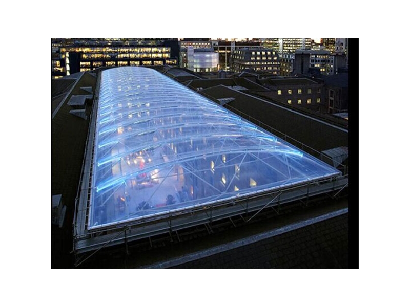 (3)ETFE 膜的透光率可高達95%。該材料不阻擋紫外線等光的透射,以保證建筑內部自然光線。通過表面印刷,該材料的半透明度可進一步降低到50%;