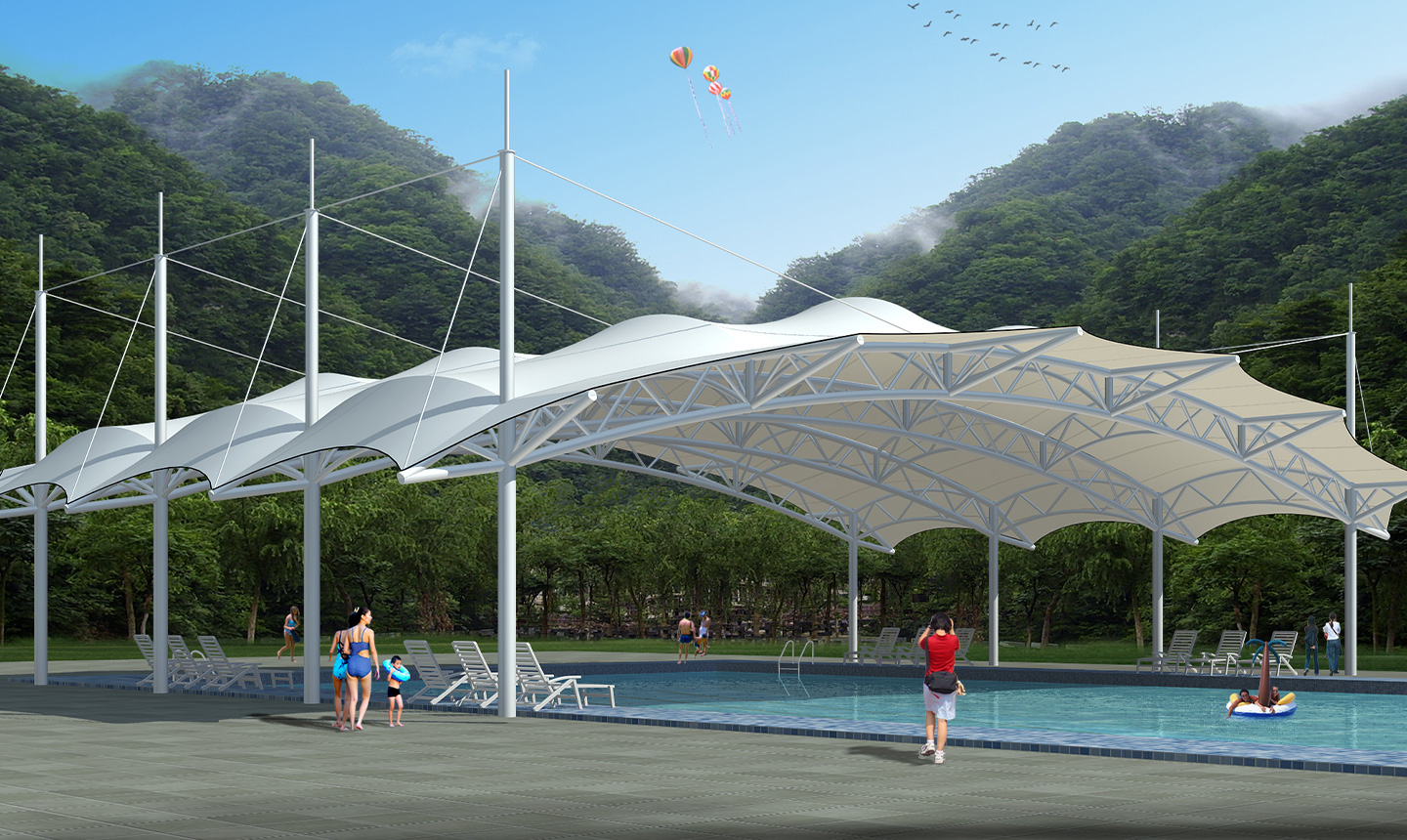 泳池.沖浪池膜結構產品的特點